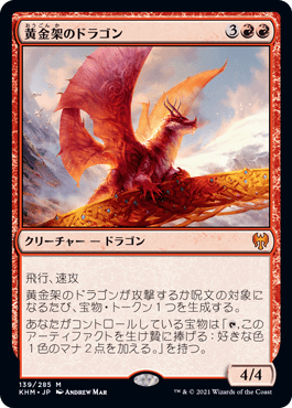 4マナと軽いので宝物2個から自分戦場の《黄金架のドラゴン》を残しながら